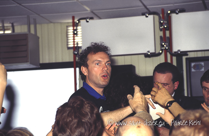 Julien Lepers à l'anniversaire d'ouverture du magasin Cobra Vidéo de Saint-Dizier le 28 mai 1990